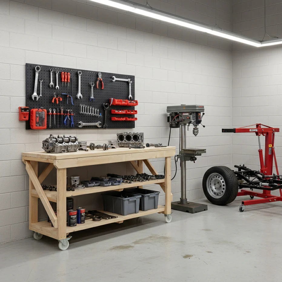 - High Load Capacity: Designed to support substantial weight, with a capacity of up to 850kg in its standard configuration and 500kg when fitted with wheels, accommodating a wide range of projects and equipment.