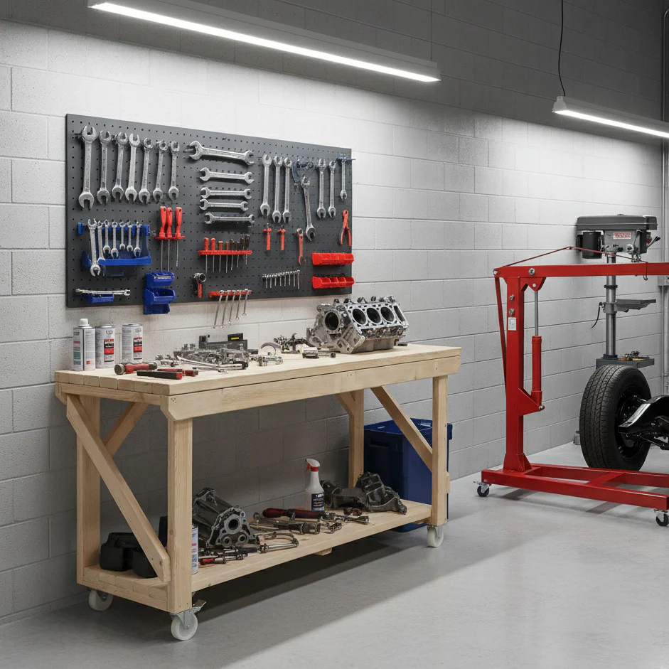 The Acorn Kiln-Dry Wooden Workbench is a robust and versatile addition to any workshop or garage, meticulously handcrafted in the UK to meet professional standards.