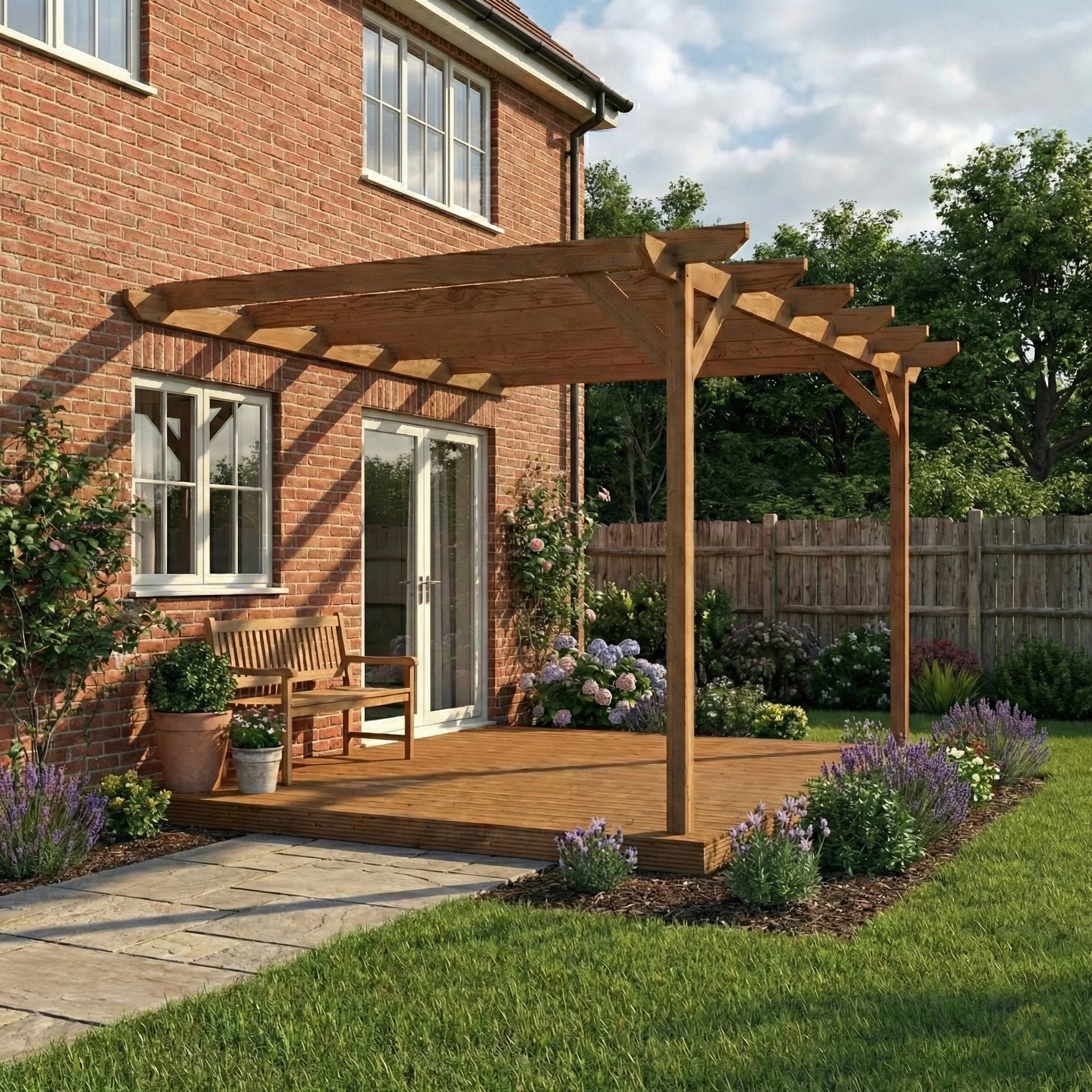 Wall Mounted Pergola and Decking Kit Chamfered Design
