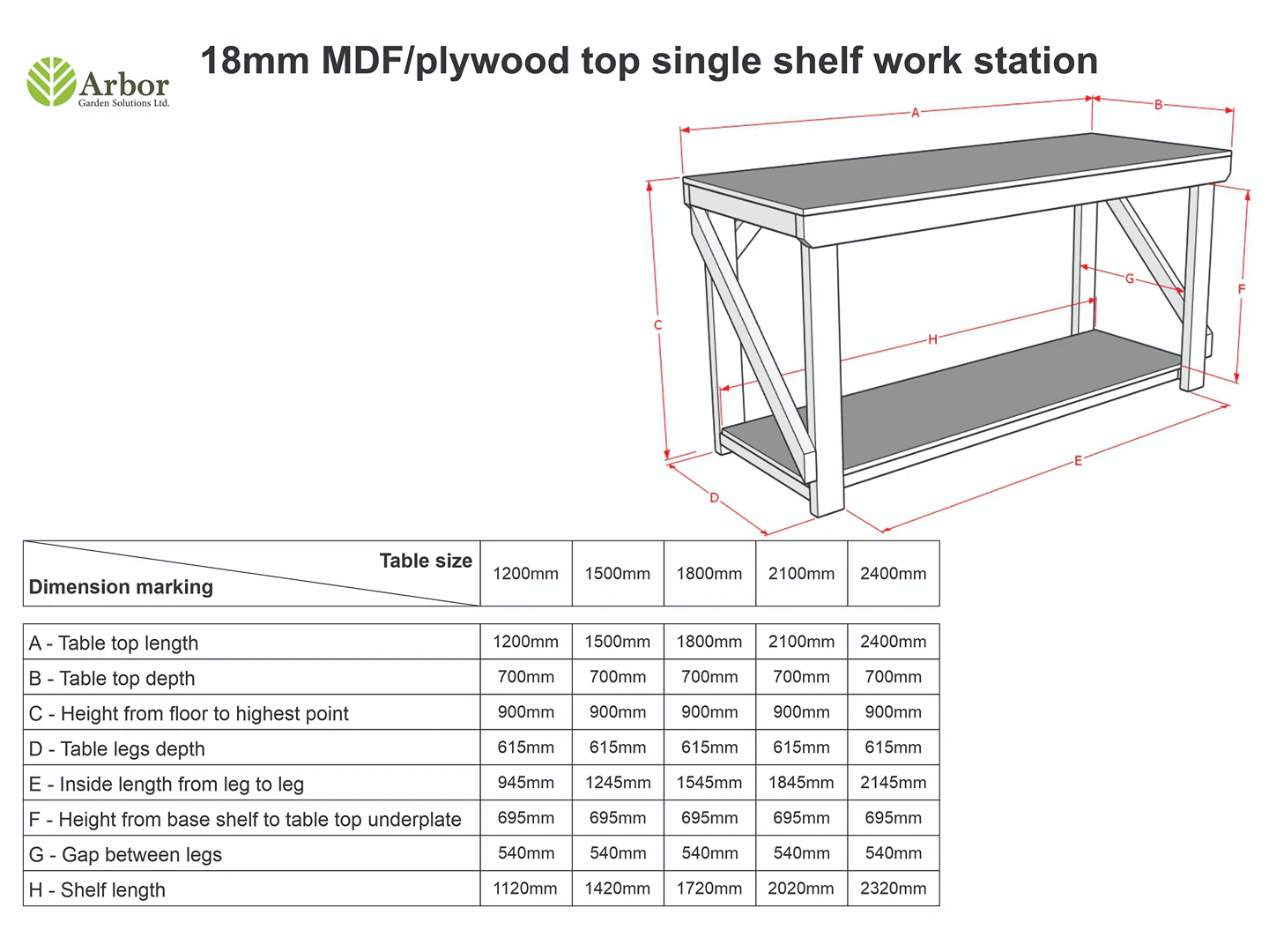 The Wooden MDF Top Workbench from Arbor Garden Solutions is a robust and versatile addition to any workshop or garage. Handcrafted in the UK, this workbench features a frame constructed from construction-grade CLS C16 kiln-dried timber, ensuring durability and stability for various projects. The tabletop and optional shelf are made from 18mm MDF ply sheets, providing a smooth and reliable surface for your tasks.