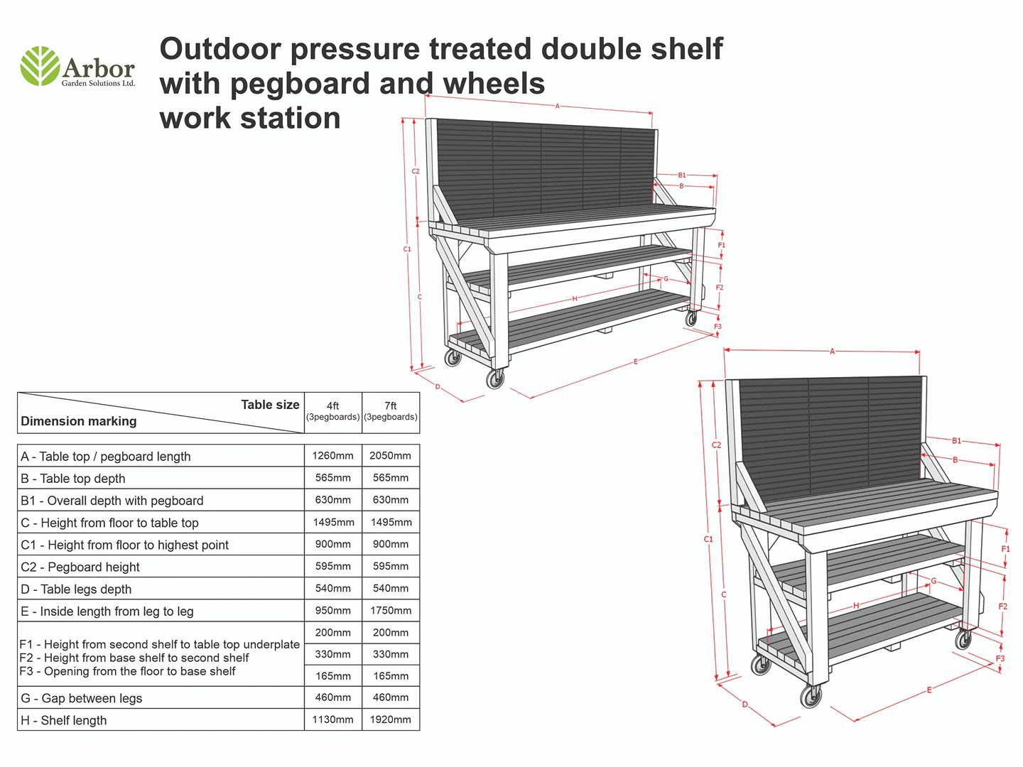 Wooden Pressure Treated Workbench With Peg Board with Double Shelf