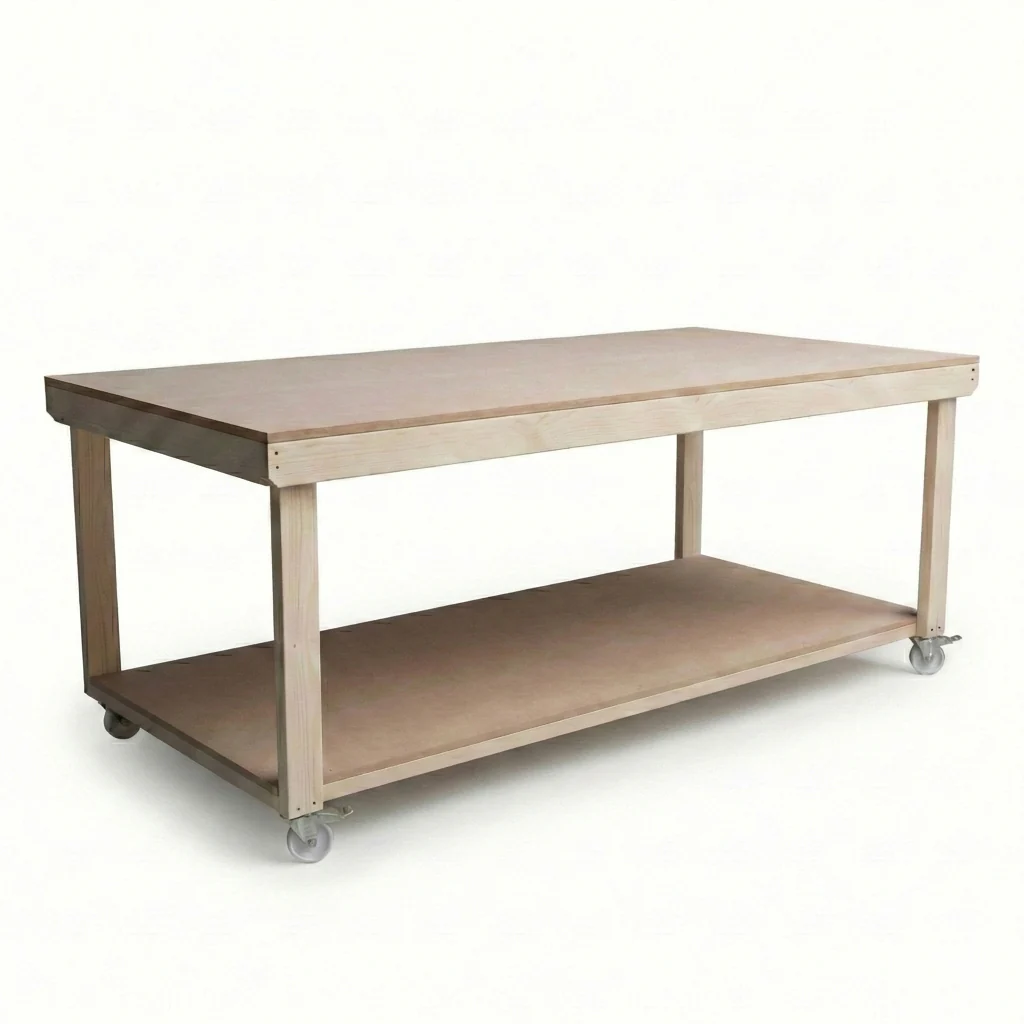Wooden Workbench MDF Top Depth-4ft With Wheels